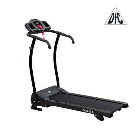 Электрическая беговая дорожка для занятий дома. Тренажер с гидравлической системой складывания и ручной регулировкой угла наклона. Контролировать частоту сердечных сокращений позволяют 2 встроенных в поручни датчика.