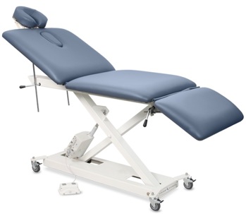 3-ех секционный массажный стол с электроприводом. Прочность и устойчивость конструкции обеспечиваются сварной рамой формы "Х" с толщиной стального листа 3 мм. За вертикальный подъем отвечает мощный и надежный двигатель производства компании Linak (Дания), максимальный вес пользователя составляет внушительные 220 кг. Рабочий диапазон высоты ложемента варьируется от 52 до 98 см. Секции головы и ног регулируются механическим способом, центральная секция фиксированная.