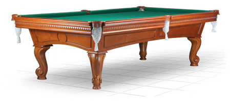 Бильярдный стол класса интерьер-дизайна, хранящий в себе дух старинного университетского центра Англии. Элегантный стол с изящными изогнутыми ножками и причудливой резьбой. Этот стол, совмещающий в себе изысканный вид с отличными игровыми характеристиками понравится не только хорошему игроку, но и самому взыскательному эстету. Основа игрового поля состоит из трех каменных плит Ардезия, что обеспечивает идеально ровную поверхность стола. Малые размеры стола позволят разместить его в небольшом бильярдном кабинете, уютном баре или кафе. Модель выпускается в двух модификациях: для русского бильярда и пула. Тип игры: Пирамида Основа игрового поля: Ардезия Толщина плит, мм: 25 мм из трех частей Цвет: корица Бортовая резина: DBO Speedball Сукно: Iwan Simonis (желто-зеленое) Лузы: латунь, кожа, лен Диаметр шара, мм: 68 Минимальные размеры помещения, см: 554 х 442 Размер: 8 футов