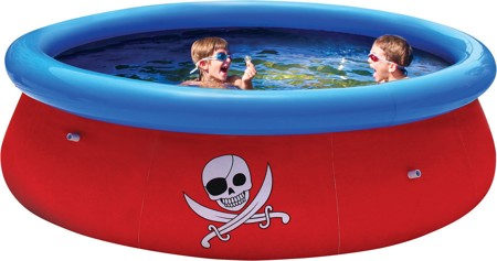 Поддержка бортов осуществляется при помощи надувного кольца, которое поднимается по мере заполнения бассейна и расправляет его стенки. В бассейне имеется три отверстия: два для подключения фильтрующей установки (приобретается отдельно) и одного сливного клапана, для подключения к садовому шлангу для слива воды вдали от бассейна.