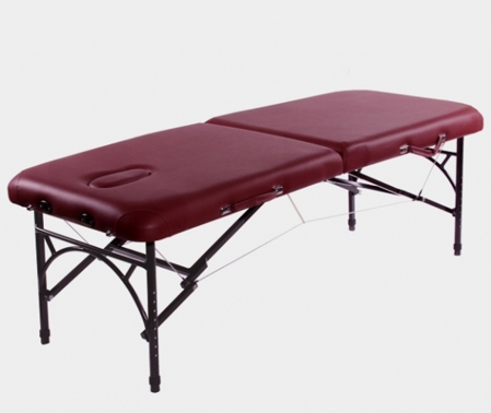 В качестве наполнителя используется мягкий поролон толщиной 5.1 см. Материал обивки – поливинилхлорид высшего качества (PVC Soft Touch™ Vinyl) толщиной 0.90 мм. Высота стола регулируется в 8-ми положениях в диапазоне от 60 до 81 см. Аркообразная форма передней и задней частей рамы позволяет массажисту сидя делать массаж головы и плеч. Предусмотрены отверстие для лица и заглушка. Размер стола – 184 см. в длину и 71 см. в ширину, максимальный вес пользователя составляет 227 кг.