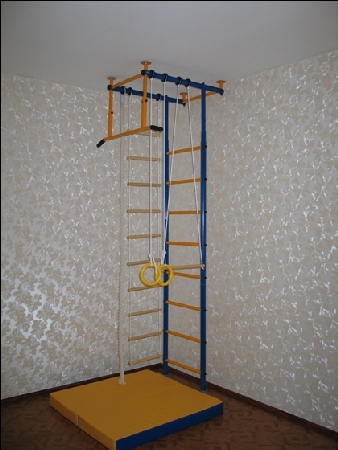 - спортивный комплекс представляет собой сборно-разборную конструкцию из металлических труб, закрепленных между потолком и полом в распор, на котором могут быть установлены до 8 спортивных снарядов.