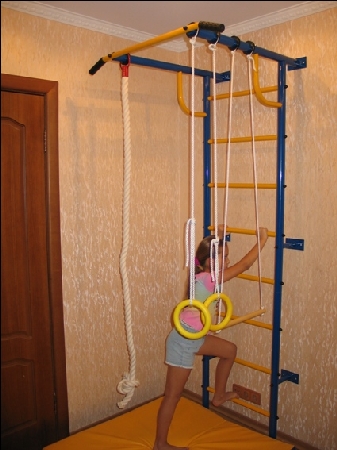 - спортивный комплекс представляет собой сборно-разборную конструкцию из металлических труб, на которой могут быть установлены до 8 спортивных снарядов.